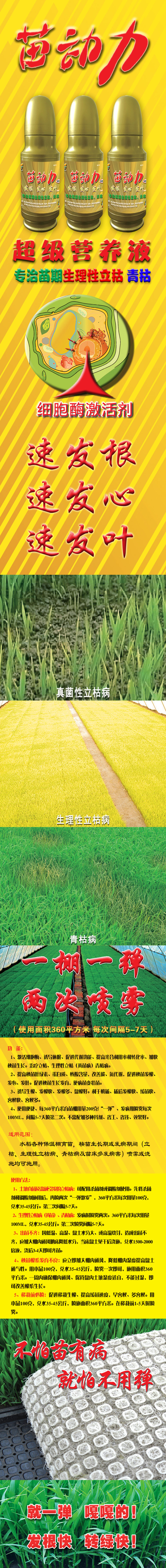 水稻各種保溫棚育苗,秧(yang)苗生長(zhang)期或髮(fa)病期間(立(li)枯、生理性立枯病、青枯病及苗牀多髮病(bing)害(hai))噴霧或澆(jiao)施均可施用。